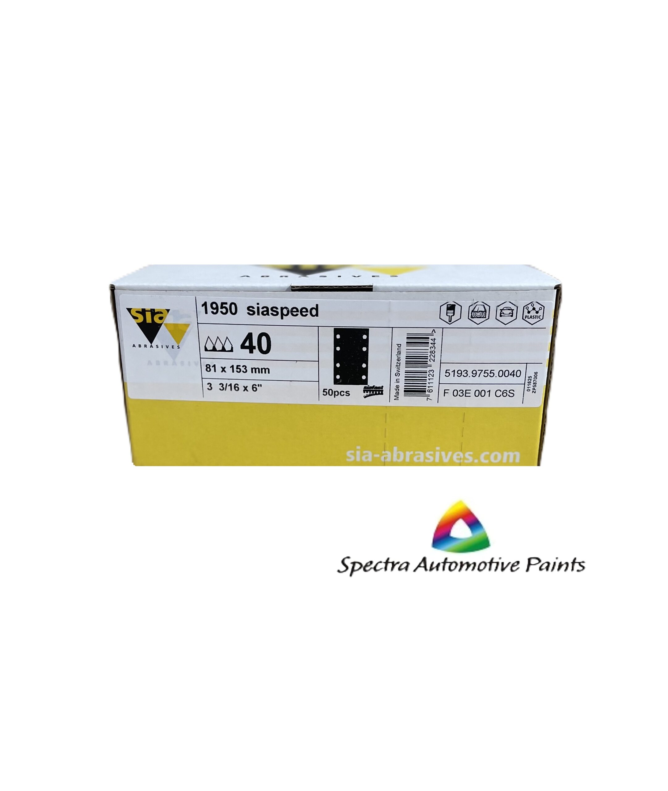 SIA Siaspeed 1950 8-Hole Velcro Sanding Block. 81mm x 153mm (Box of 50) 40grit