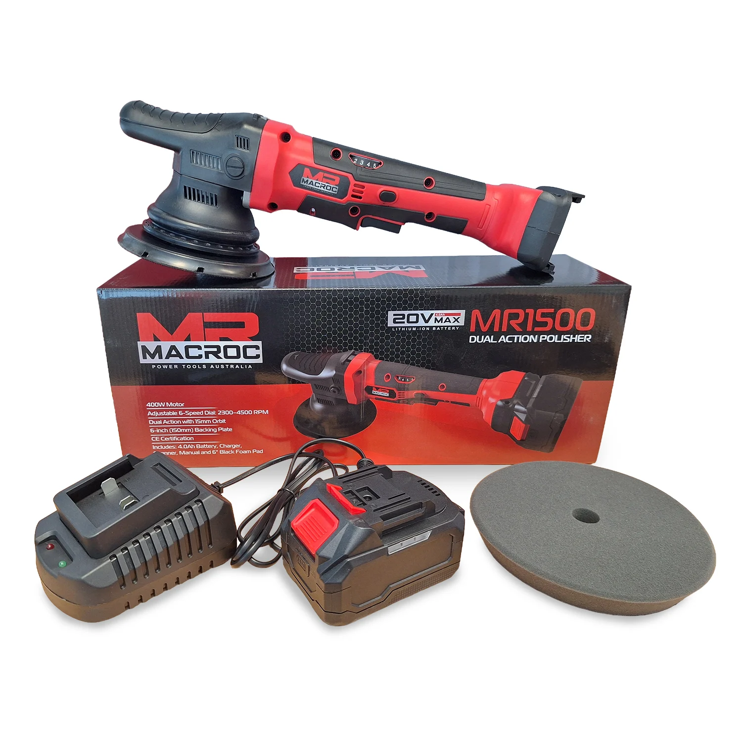 MACROC Cordless Dual Action Polisher – 150mm (6″) | 4.0Ah Battery