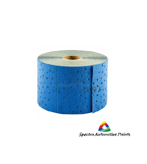 premium, high-performance sheet roll 6124 from the A975 series by Norton designed for dry sanding. It features a P-graded seeded-gel ceramic alumina abrasive, a laser-cut spiral “Multi-Air Cyclonic” vacuum-hole pattern for superior dust extraction, and a fiber-reinforced latex-saturated backing for enhanced tear resistance.